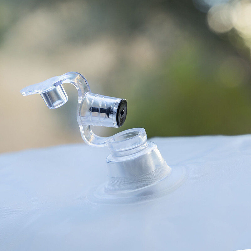 This floating pouffe with LED light should be inflated without excessive pressure. To deflate, remove the safety valve.