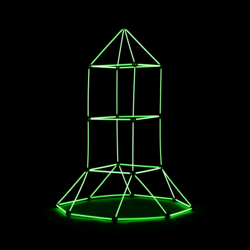 Shines in the dark: this construction game for children will attract everyone’s attention when it shines in the dark. Children and adults will be captivated by the charm and magic of this original and fun game. Its 54 fluorescent rods need to receive light for at least 30 minutes so they light up in the dark.