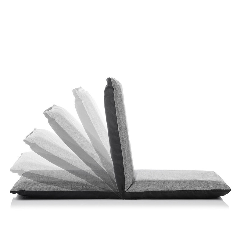An original and elegant reclinable floor chair which is very comfortable and convenient, enabling up to 6 positions so that it can be adapted to the desired posture each time. It features a backrest with an adjustable angle (adjusted from 90º-180º), so it can be used to sit on, or to lie down on when it is fully unfolded like a mat. This modern and versatile floor chair is ergonomic, multi-position and multifunction, offering a multitude of options for children and adults. Ideal for reading, meditating, resting, watching television, playing video games, etc. In addition, the lightweight and portable design with a carrying handle means that it can easily be taken anywhere it is needed. It is also easy to store and takes up the least amount of space when flat, so it can be stored under the bed or sofa, in the wardrobe, etc. It provides a stable support and firm hold thanks to its robust structure and quality materials. Recommended for indoor use (bedrooms, lounges, etc.) or in semi-covered spaces of the home (terraces, etc.). It can be cleaned easily (by hand washing).