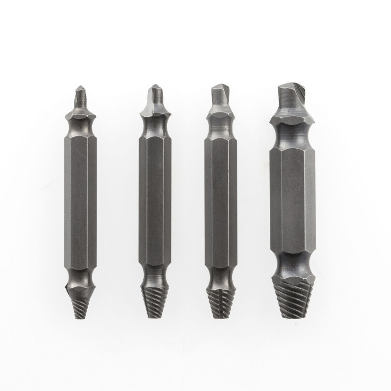Very useful and effective to remove damaged and/or rusted screws easily and quickly. Each double-acting drill bit drills through the head of the screws and then effortlessly removes them.