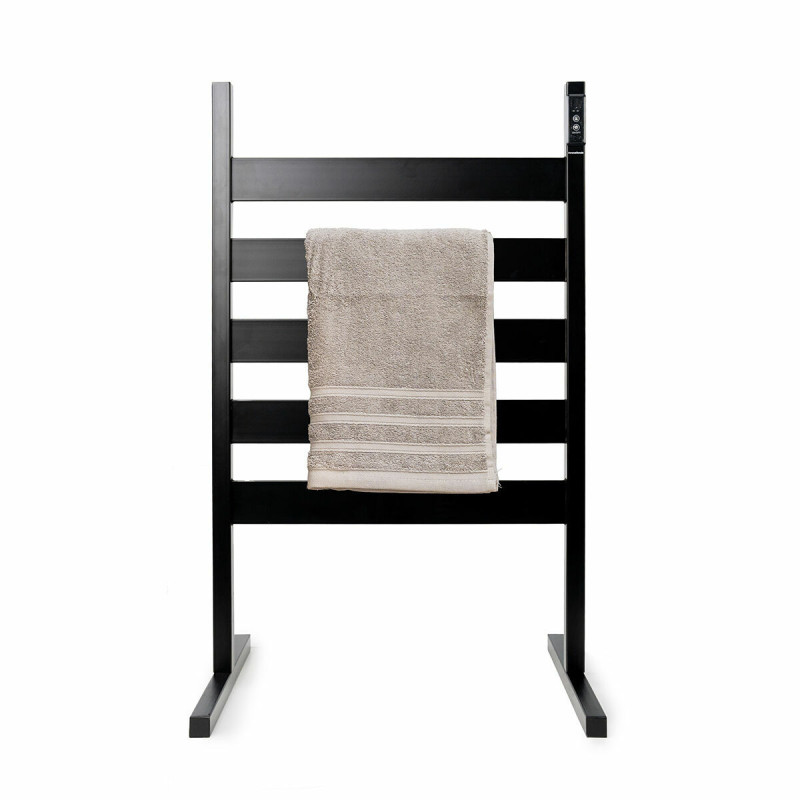 • Modern and elegant towel rail: our free standing or wall mounted electric towel rail is ideal for hanging various towels and for drying or warming them quickly and efficiently. A durable free standing or wall mounted towel rail made from carbon steel and PC. With its discrete and compact design, it will easily fit in with your bathroom décor.